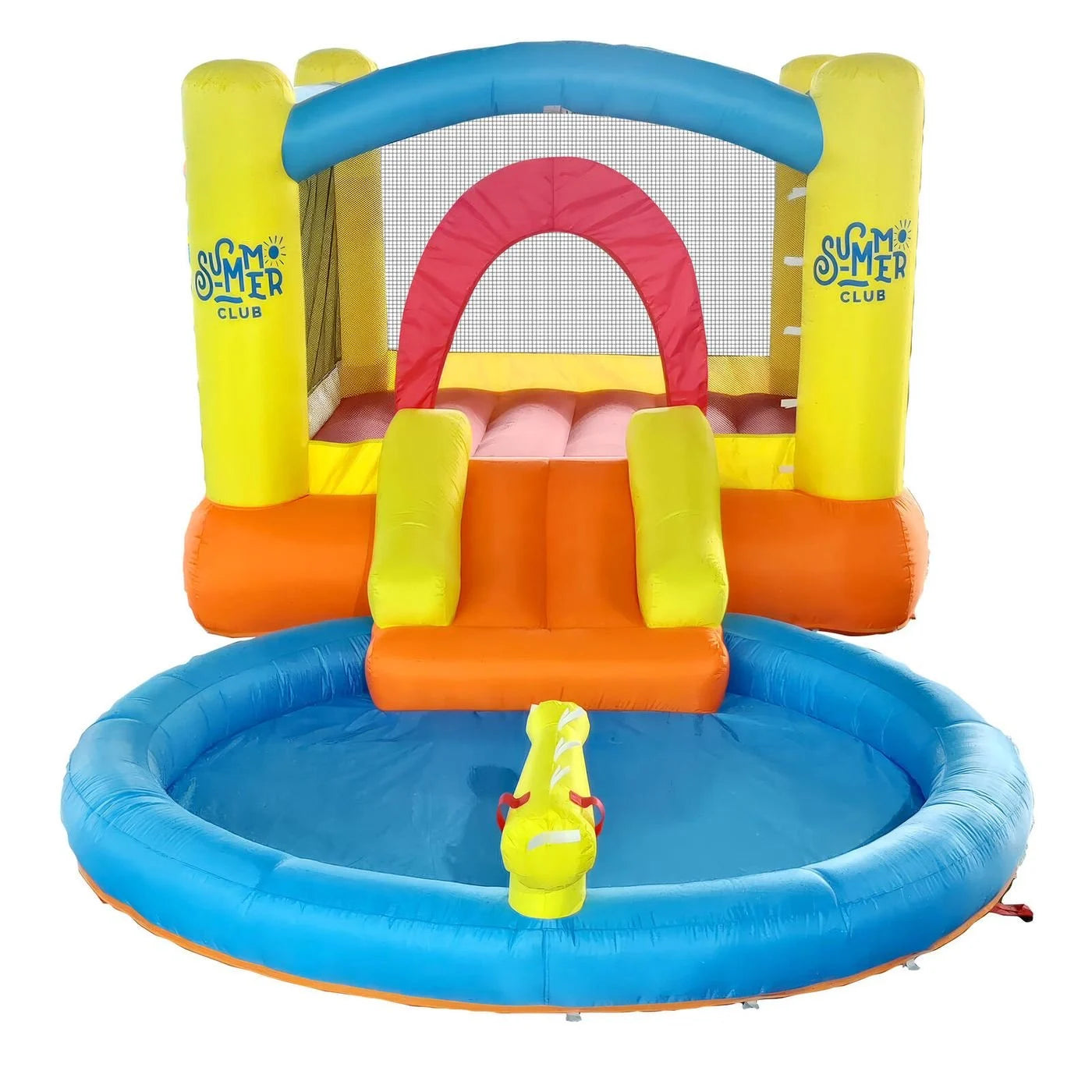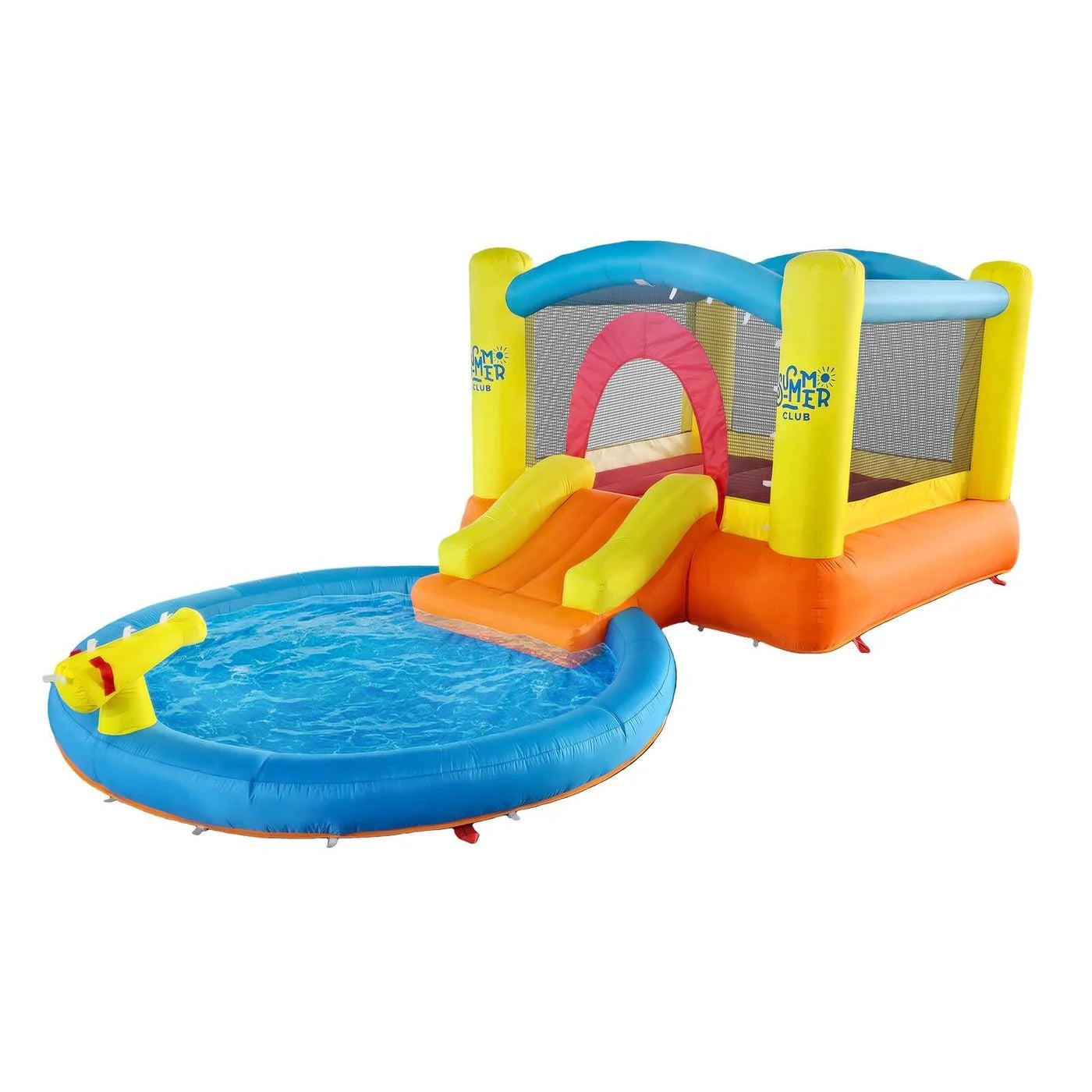 Turn your backyard into a summer paradise with the Summer Club Constant Airflow Water Park Jumping Castle! Designed for non-stop fun, this inflatable play center combines a jumping castle, water slide, splash pool, and built-in water cannon for hours of outdoor excitement. Easy to set up with continuous airflow, it's perfect for keeping kids cool, active, and entertained all summer long.