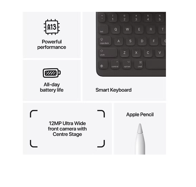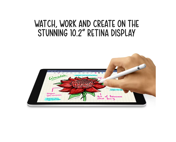 Powerful. Easy to use. Versatile. The new iPad has a beautiful 10.2-inch Retina display1, the powerful A13 Bionic chip, an Ultra Wide front camera with Centre Stage, and support for Apple Pencil and the Smart Keyboard.2 iPad lets you do more, more easily. All for an incredible price.