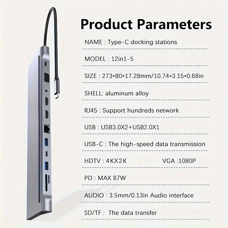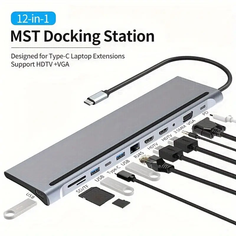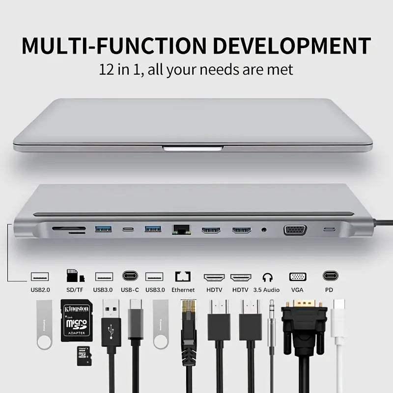 Tech USB C Docking Station 12 In 1 Multiport Adapter Hub