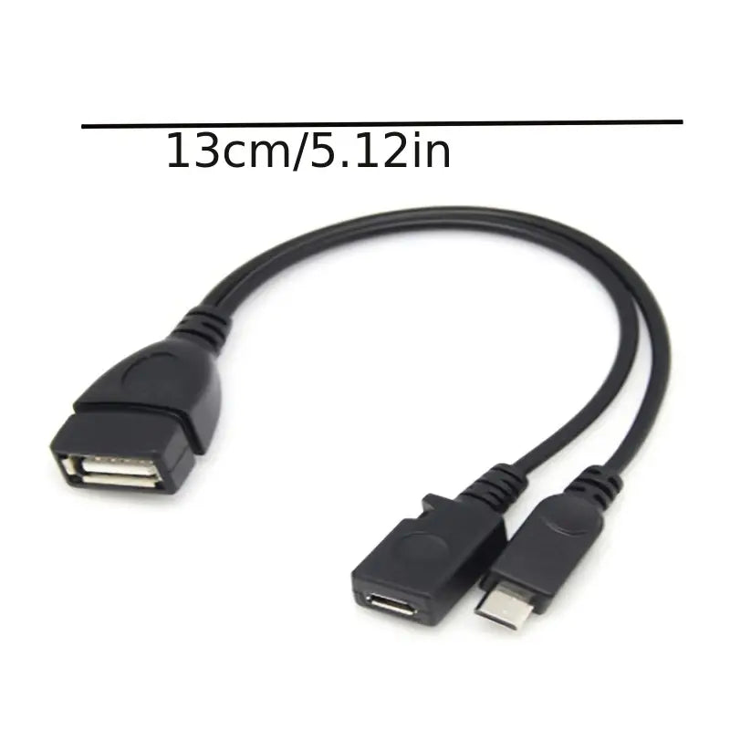 Microusb male to female USB OTG cable After testing, the USB keyboard and USB flash disk are OK, and the mobile hard disk has to be connected with USB power supply. At the same time, it can be used for mobile phones, tablets, mid, UMPC with micro USB OTG interface, And e-books as OTG transmission function. 1. This adapter cable has a separate micro USB interface, which can connect the charger and micro USB data cable Check the USB device in use 2. It does not support power supply for mobile phon